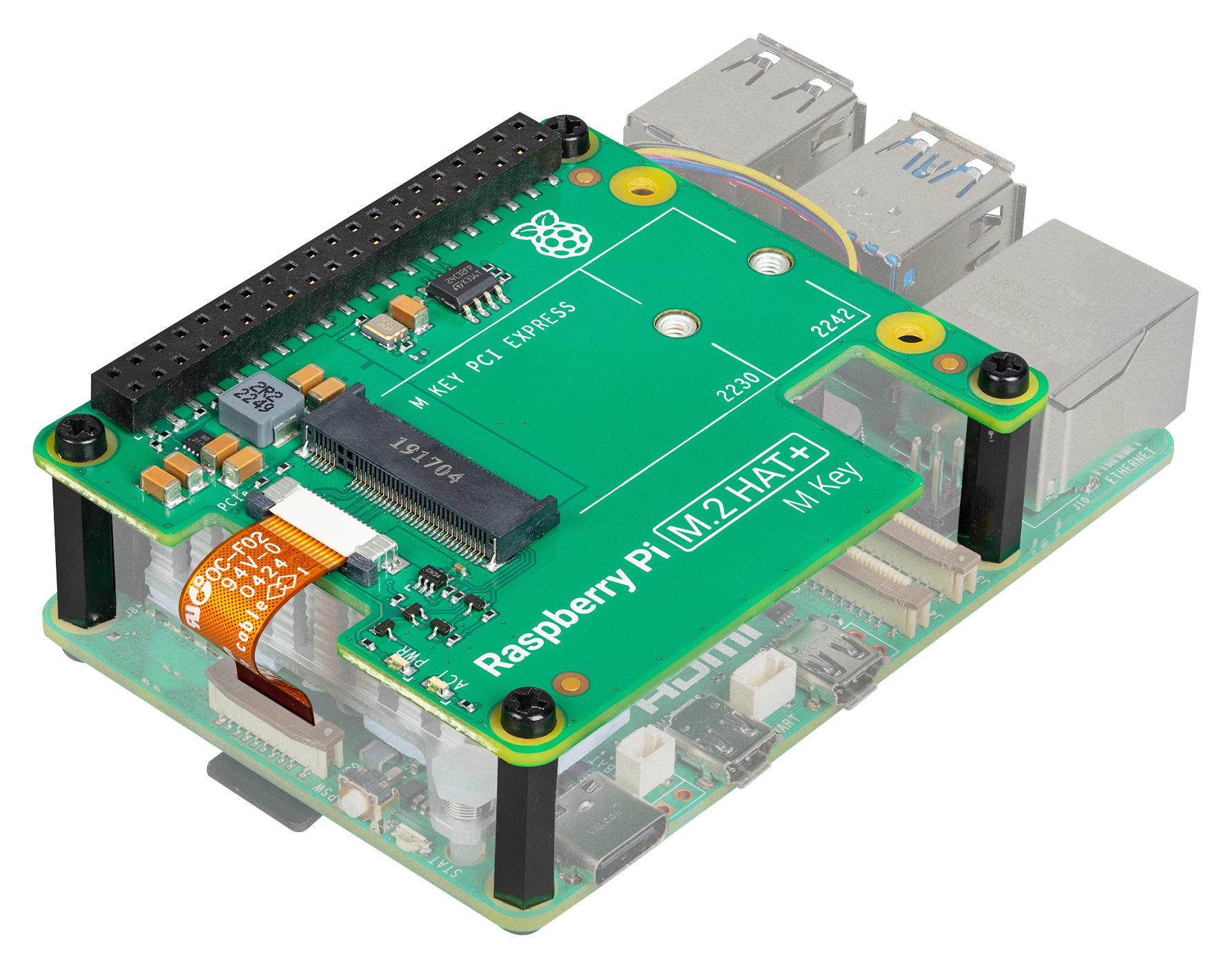 The M.2 HAT+ adapter board connects M.2 devices to the Raspberry Pi 5 via PCI-Express for faster data transfer and boot times. It supports NVMe SSDs and AI accelerators, works with 2230 or 2242 drives, and delivers up to 3A power. Easy to use with the latest Pi OS, it includes LEDs for status and comes with hardware to fit the Raspberry Pi Active Cooler—perfect for hobbyists wanting to boost their Pi’s performance.